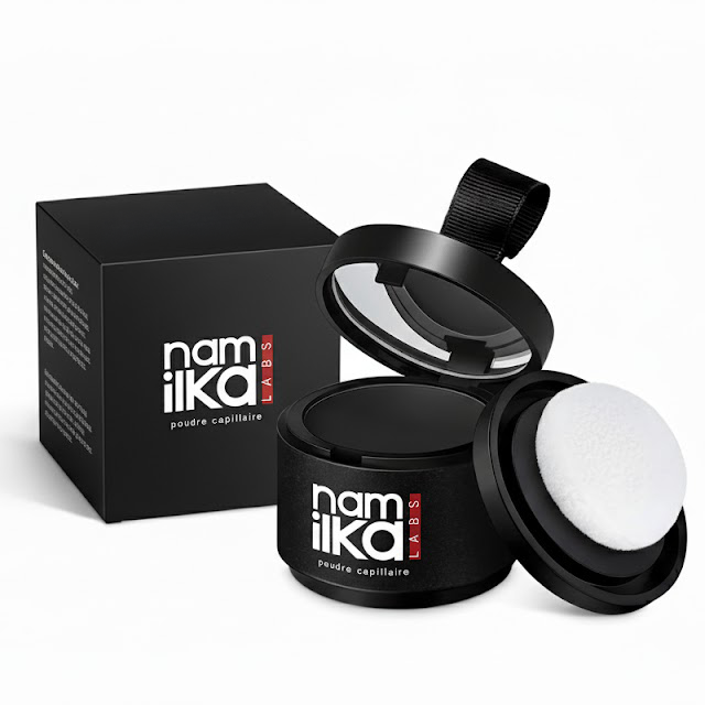 La poudre capillaire Namilka Labs dissimule en quelques secondes les zones clairsemées — pour une chevelure plus fournie et un aspect naturel.